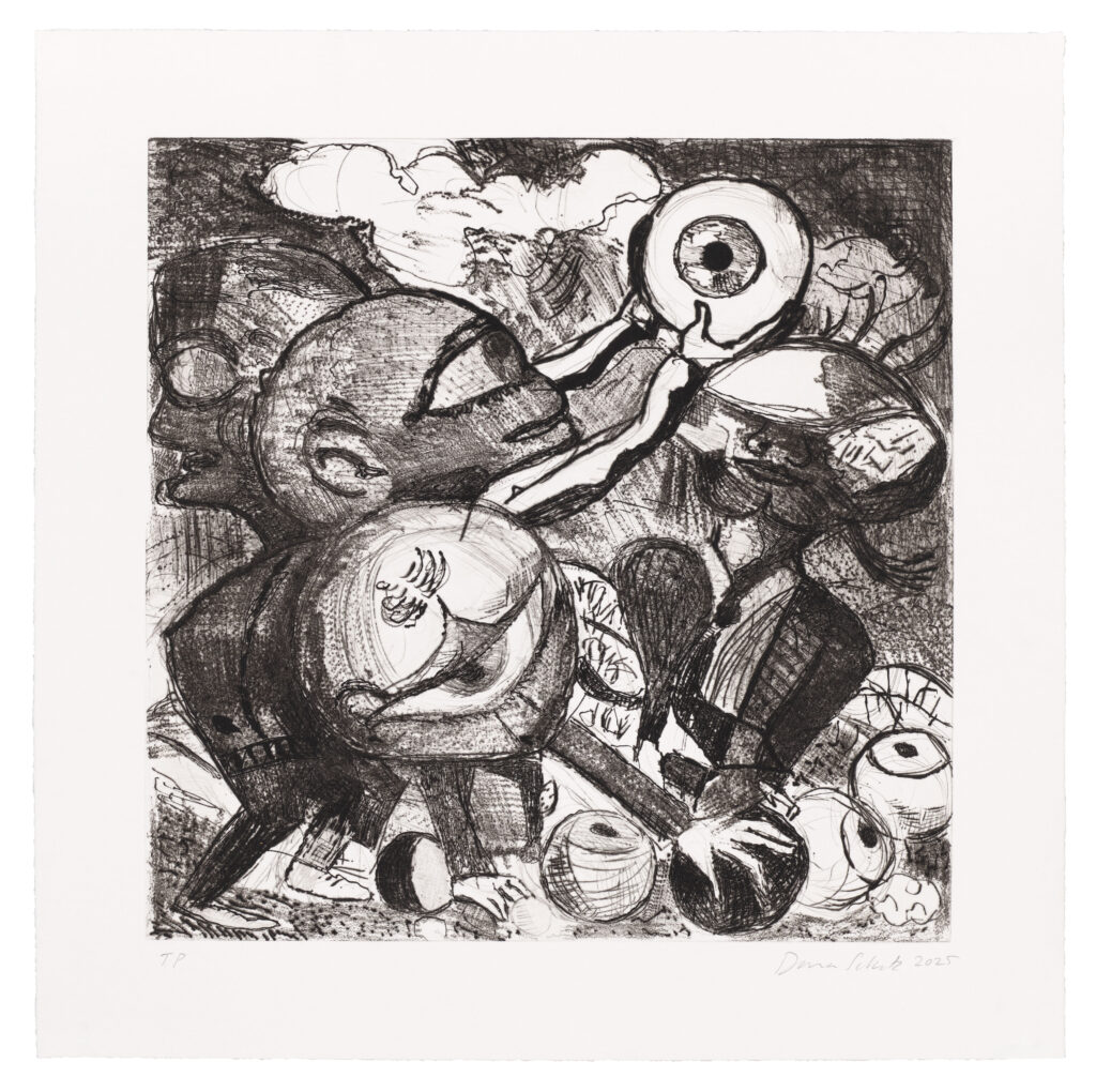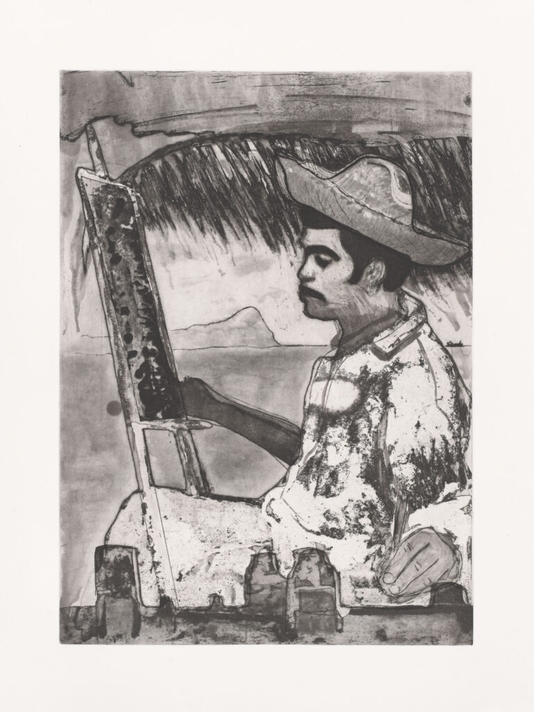 Collage with silkscreen, etching, relief printing, embossed